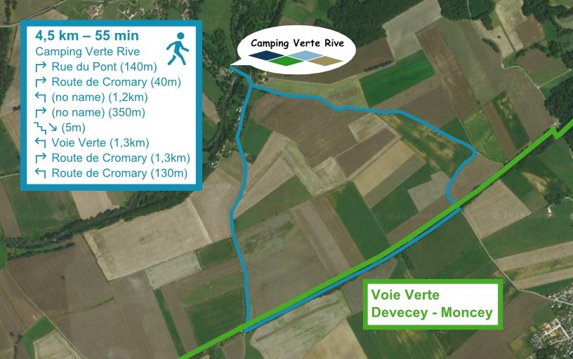 Wanderung oder Fahrradtour via den 'Voie Verte' bis zum Devecey oder Moncey (vom Campingplatz aus) Sowohl Moncey als auch Devecey können Sie über eine alte Eisenbahn zu Fuß erreichen. Bei trockenem Wetter ist die Strecke auch perfekt zum Radfahren geeignet. - Voie Verte anschauen als pdf-Datei Fahrradroute bis zum SuperU via Voie Verte: - Folgen Sie der Route über Komoot (Webseite) - Laden Sie die Route als GPX-Datei herunter, z.B. um über Ihre Navigations-App (z.B. Komoot-App) öffnen zu können |
