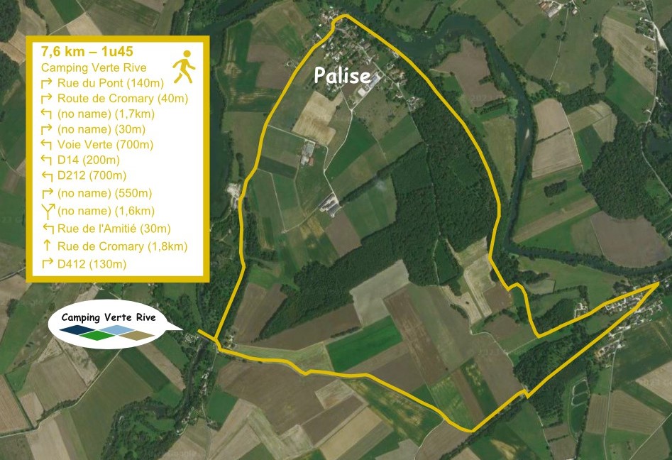 Wanderung 7,6 Km / 105 Min. Moncey - Palise (Der gelbe Wanderung in unserer Informationsbroschüre) Gehen Sie entlang der 'Voie Verte' nach Moncey und dann entlang des Flusses nach Palise. Über die Route de Palise wandern Sie zurück zum Campingplatz. - Die Route anschauen als jpg-Datei - Folgen Sie der Route über Komoot (Webseite) - Laden Sie die Route als GPX-Datei herunter, z.B. um über Ihre Navigations-App (z.B. Komoot-App) öffnen zu können |