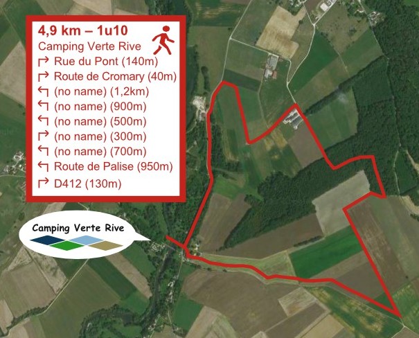 Wanderung 4,5 Km / 55 Min. durch die Natur (Der blaue Wanderung in unserer Informationsbroschüre) Diese Wanderung verläuft durch die Felder und entlang eines Teils der 'voie verte'. Über das leichtgelbe Haus gelangen Sie entlang der D412 zurück zum Campingplatz. - Die Route anschauen als jpg-Datei - Folgen Sie der Route über Komoot (Webseite) - Laden Sie die Route als GPX-Datei herunter, z.B. um über Ihre Navigations-App (z.B. Komoot-App) öffnen zu können |